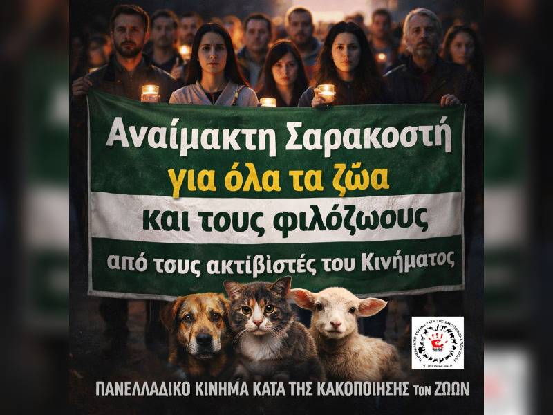 Το ΠΑΝΕΛΛΑΔΙΚΟ ΚΙΝΗΜΑ ΚΑΤΑ ΤΗΣ ΚΑΚΟΠΟΙΗΣΗΣ ΤΩΝ ΖΩΩΝ απευθύνει δημόσια έκκληση προς την Πολιτεία, την Τοπική Αυτοδιοίκηση, τους θεσμικούς φορείς και κάθε πολίτη: