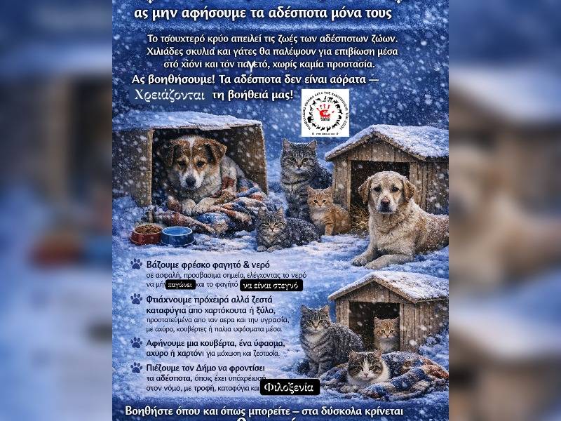 Κάθε χειμώνα θρηνούμε ζώα που έφυγαν από τη ζωή από υποθερμία, πείνα ή αρρώστιες, που θα μπορούσαν να είχαν προληφθεί.