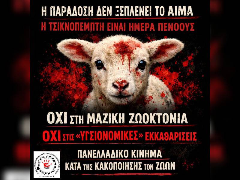 Με αφορμή την Τσικνοπέμπτη και τις παράλληλες μαζικές θανατώσεις ζώων λόγω ζωονόσων, καταγγέλλουμε: