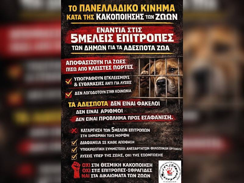 ✅ Υποχρεωτική συμμετοχή ανεξάρτητων φιλοζωικών οργανώσεων