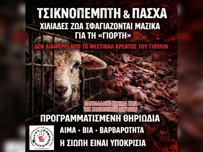 Την Τσικνοπέμπτη και το Πάσχα, εκατοντάδες χιλιάδες ζώα θανατώνονται για τη «γιορτή».