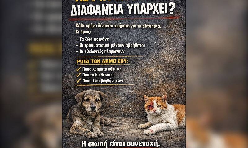 Κουραστήκαμε να ακούμε ότι «δεν υπάρχουν λεφτά». Δεν υπάρχουν λεφτά για τροφές, για στειρώσεις, για περίθαλψη. Δεν υπάρχουν λεφτά για τα ζώα που ζουν —και…