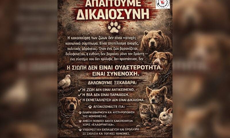Σε έναν κόσμο, όπου η βία απέναντι στα ζώα συχνά κανονικοποιείται, συγκαλύπτεται ή βαφτίζεται «παράδοση», «ανάγκη» ή «συνήθεια», η σιωπή μας καθιστά συνένοχους. Δεν αρκεί…