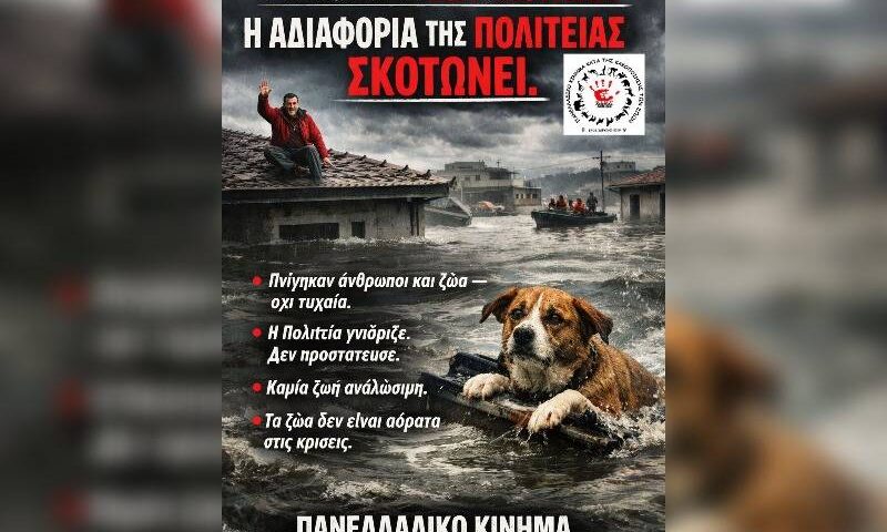 Περισσότερα Η απώλεια ανθρώπινων ζωών και ζώων από την κακοκαιρία, δεν είναι «φυσικό φαινόμενο χωρίς υπευθύνους»Δεν μπορείς να δίνεις εντολή για εξόντωση εκατοντάδων χιλιάδων ζώων παραγωγικών, αδέσποτων και άλλων ειδών και μετά να το παίζεις και ευαίσθητος φιλόζωος